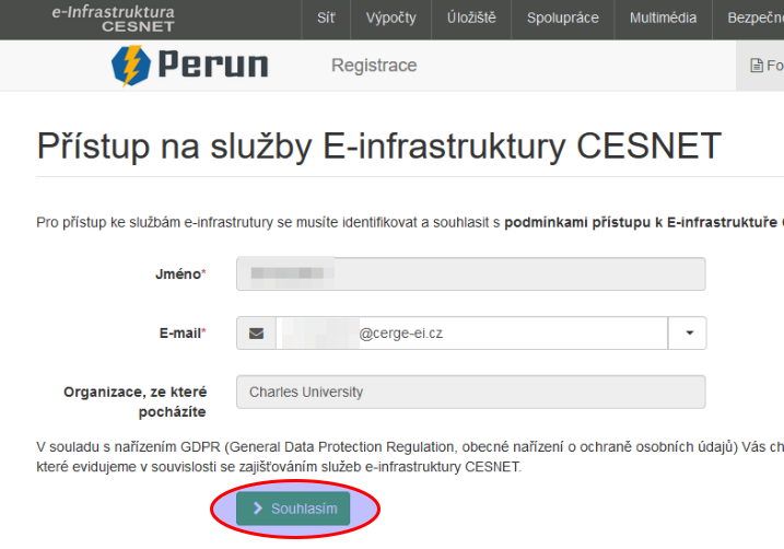 6) Agree to create an account on the cesnet infrastructure.
