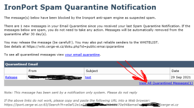 It is practical to keep the link to your personal quarantine page for future use (link: View All Quarantined Messages)